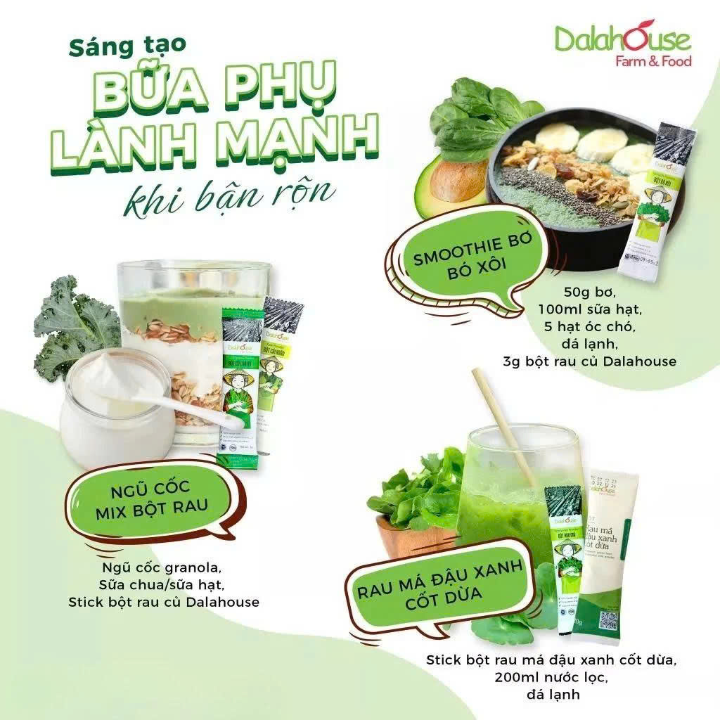 Bột bó xôi DalaHouse sản xuất từ 100% bó xôi tươi được trồng và thu hoạch tại trang trại organic của Dalahouse tại Đơn Dương, Lâm Đồng. Chúng tôi sử dụng công nghệ sấy lạnh hiện đại tiêu chuẩn Châu Âu và công nghệ nghiền thực phẩm ở nhiệt độ thấp giúp bảo toàn các enzym và chất dinh dưỡng của rau củ, đảm bảo uy tín về chất lượng cũng như nguồn gốc với quy trình khép kín đạt chứng nhận FDA. Sản phẩm phù hợp bổ sung rau củ cho cả gia đình ngay cả khi bận rộn.