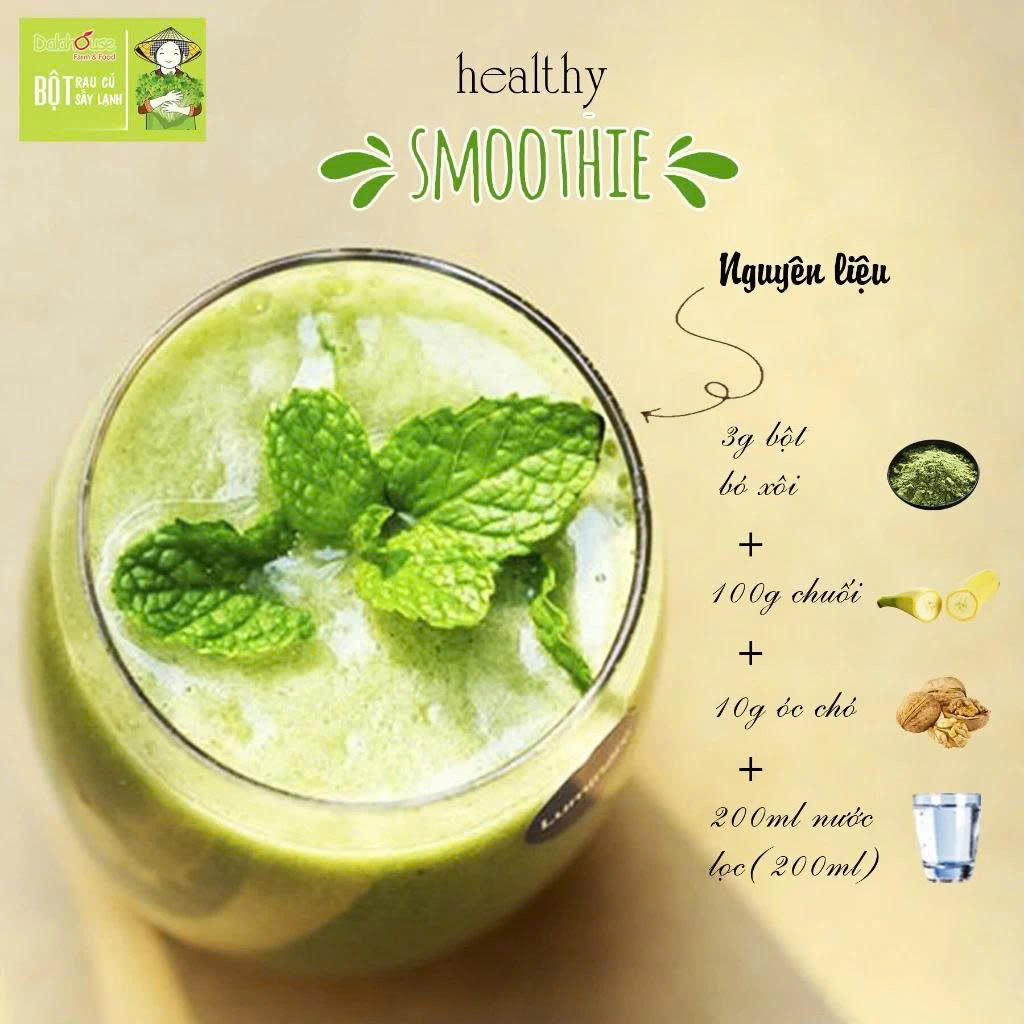 - Thành phần: 100% cải bó xôi, không phụ gia, không hóa chất bảo quản, không phẩm màu và không biến đổi gen