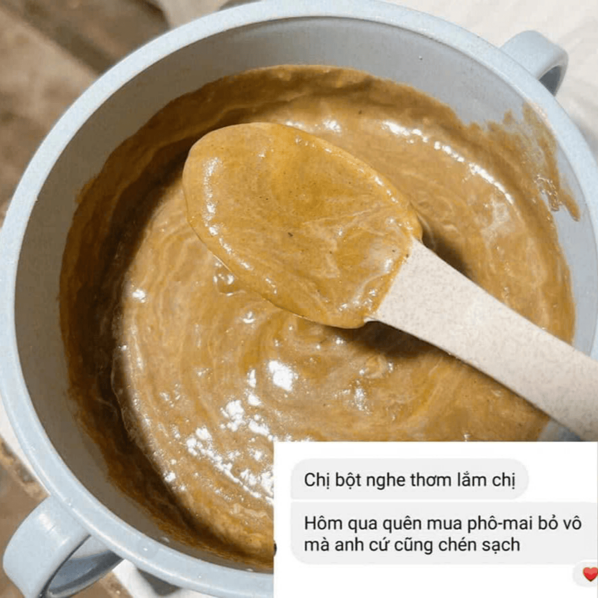 + Sau đó bắt chảo/ nồi lên bếp để lửa nhỏ khuấy nhẹ đến khi bột sệt mịn lại vừa ăn.(Để đổi món cho bé ăn ngon hơn mẹ có thể mix kèm phô mai, tôm cua, thịt bò,...)