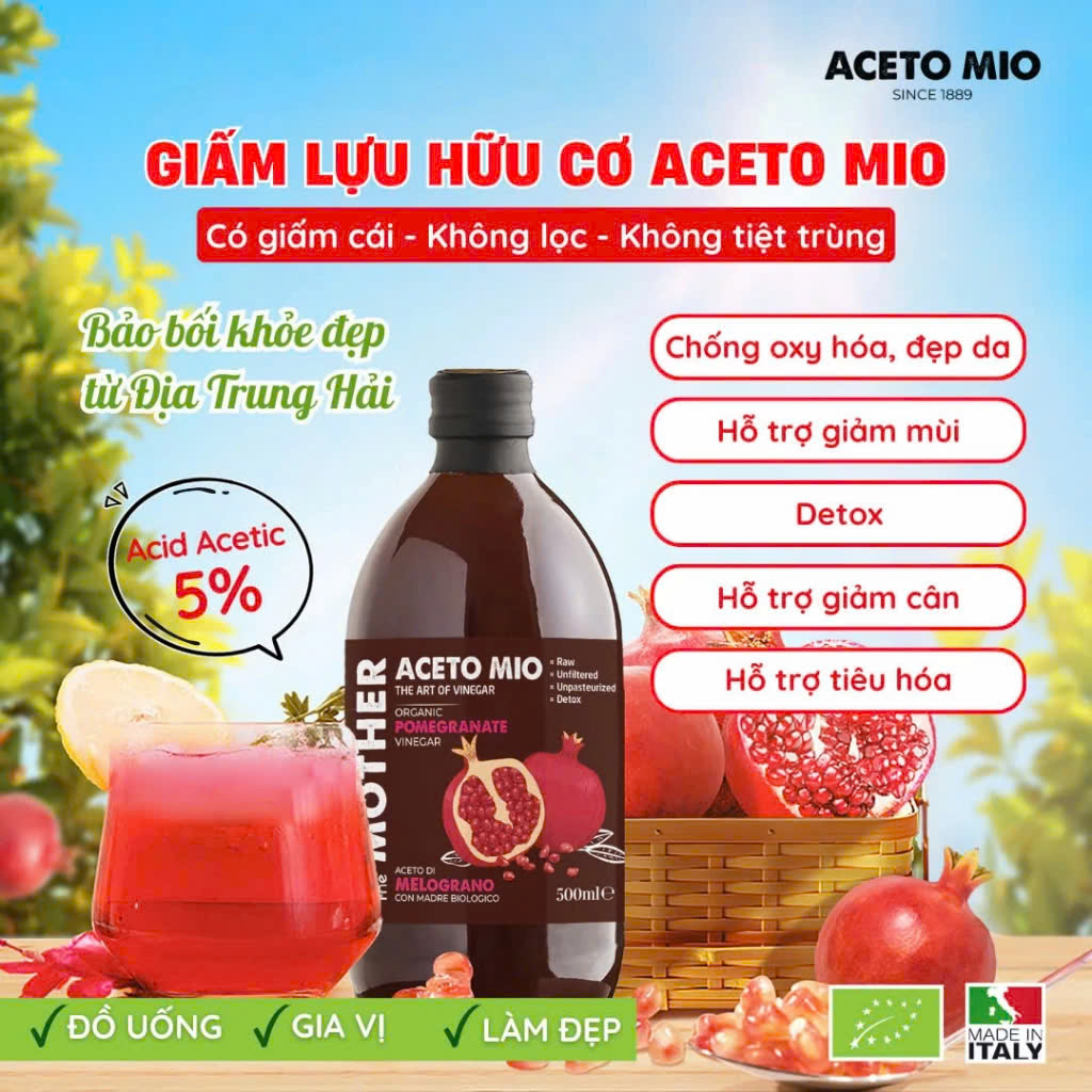 Aceto Mio là thương hiệu nổi tiếng chuyên sản xuất các sản phẩm giấm từ Italy (Ý). Trong hơn 135 năm hình thành và phát triển, nhà máy đã cho ra mắt rất nhiều dòng giấm hữu cơ tự nhiên chất lượng cao tốt cho sức khỏe.