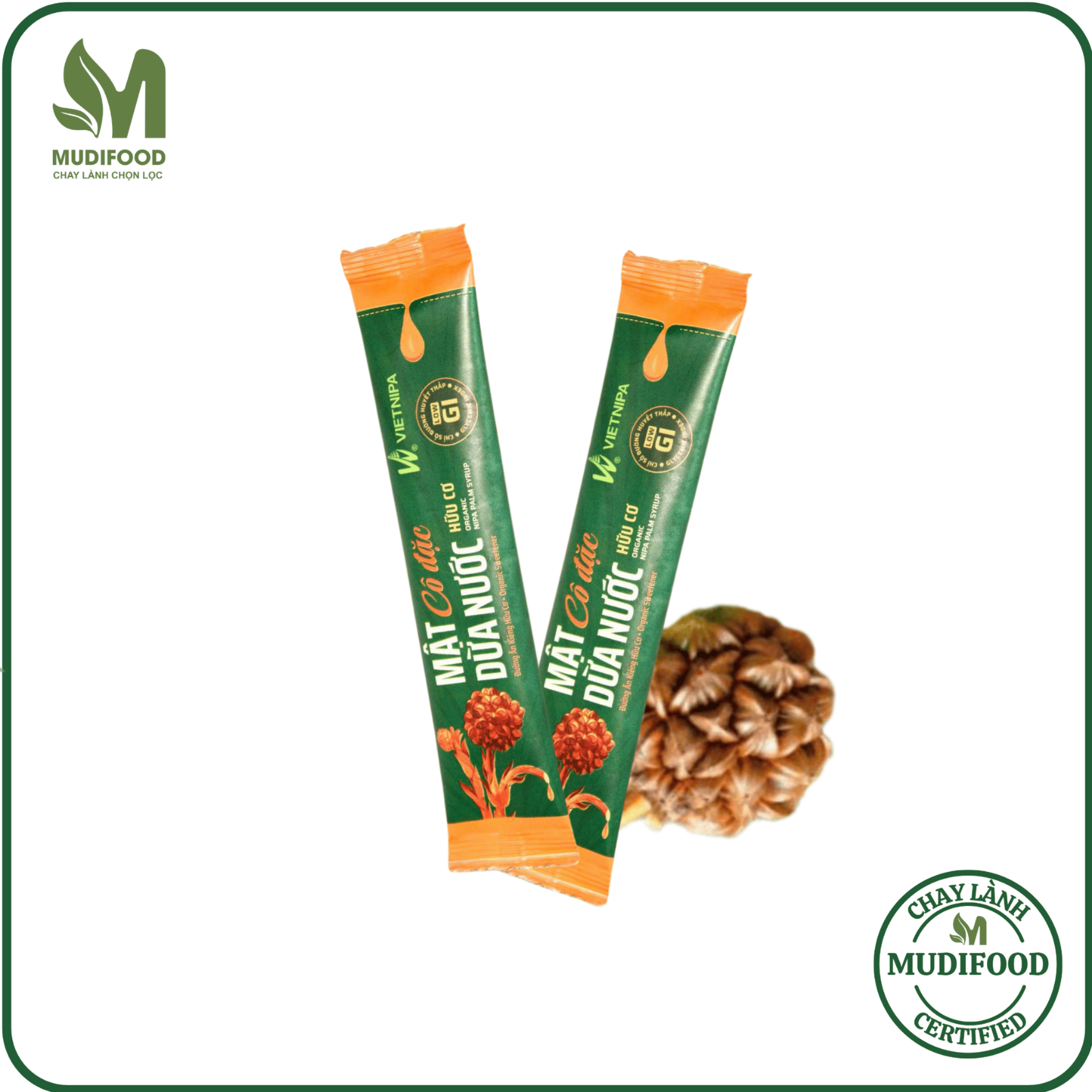 Mật Dừa Nước Cô đặc là sản phẩm dinh dưỡng hoàn toàn tự nhiên. Những giọt tinh chất trích ra từ Cuống Dừa Nước được cô đặc với công nghệ hiện đại, giữ lại hàm lượng cao thành phần dinh dưỡng, tạo cho sản phẩm hương vị đậm đà thơm ngon. Mật Dừa Nước Cô đặc được sử dụng như một giải pháp làm ngọt tự nhiên và có lợi cho sức khỏe. Chỉ số đường huyết của sản phẩm thấp (GI=16,69) nên phù hợp với mọi đối tượng, đặc biệt là người tiểu đường type 2, ăn chay, ăn kiêng.
